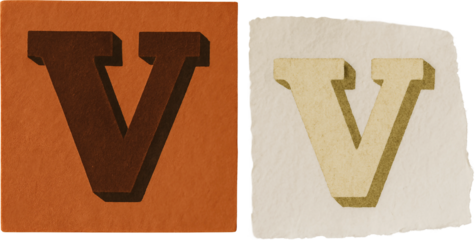 Alphabet Letter "V" in 3D Block Serif Style on Textured Paper – Orange and Cream Tones