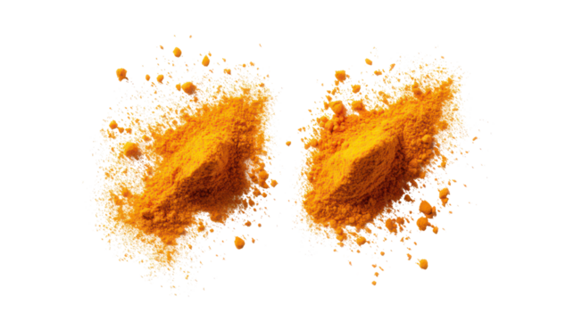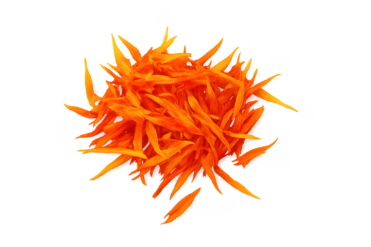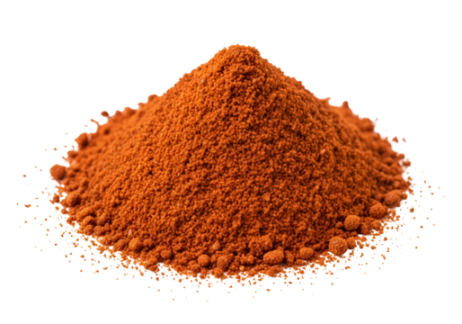 Pile of bright orange spice powder isolated on transparent background