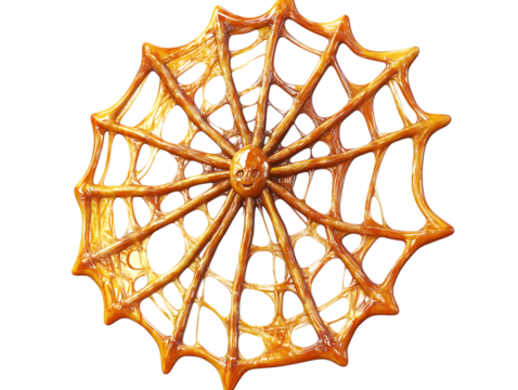 Adorable cartoon spider with big eyes and fuzzy orange body sits on a detailed white web, perfect for Halloween or children's projects bringing playful charm and whimsical delight to any design.