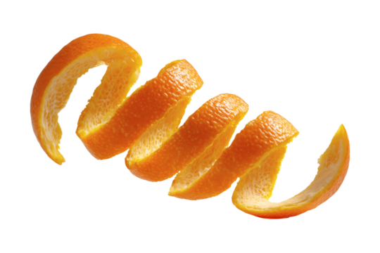 Close-up orange spiral pulp isolated on transparent background great for immune-boost blog imagery