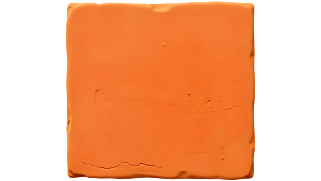 A vibrant orange square of clay, showcasing a smooth texture and bold color, ideal for artistic creations and modeling.