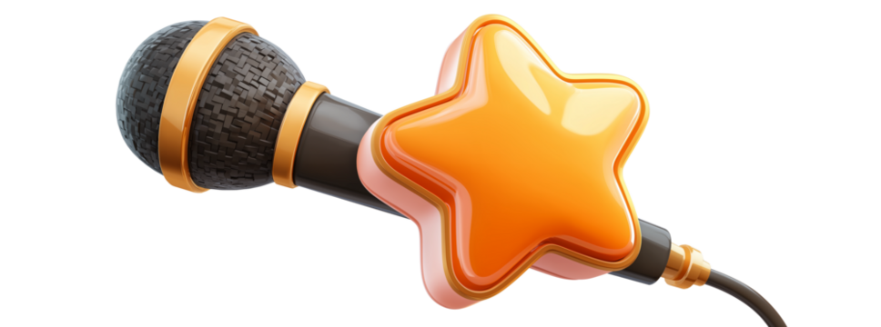 a microphone with an orange star behind it, in the style of clipart on a transparent background.