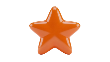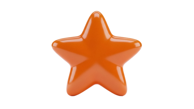 Orange 3D Star with Transparent Background, Glossy Graphic for Web Design