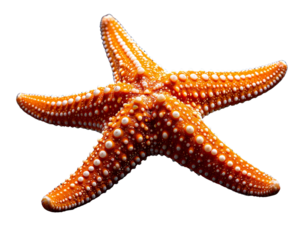 Vibrant orange starfish with textured arms against black isolated on a transparent background ocean marine