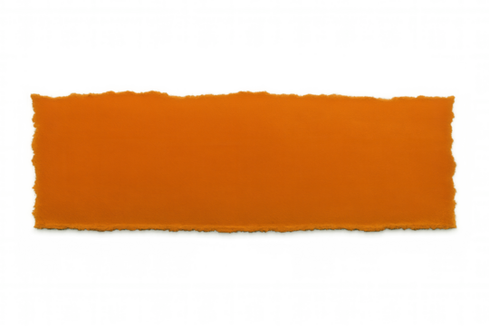 Ragged orange paper strip revealing textured edge, ripped diagonally against transparent backdrop creating graphic design element