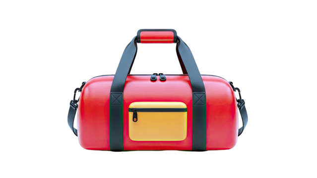 Orange, pink, yellow, and blue suitcases isolated on transparent background, representing travel and vacation