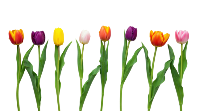 Colorful tulip flowers isolated on transparent background
