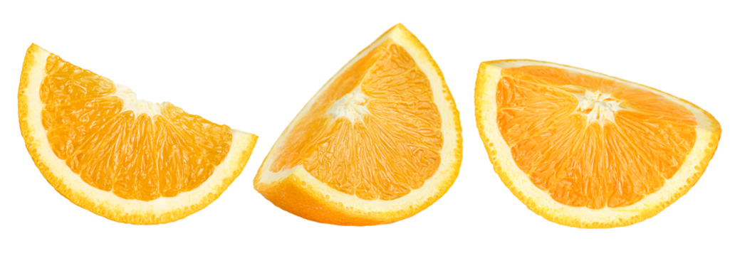 Fresh orange slices arranged creatively on a clean background. transparent background.