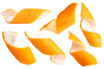 Citrus freshness design: levitating orange peel slices cut out for skincare and cosmetic mockups.