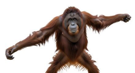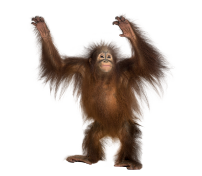 Young orangutan standing and raising arms with transparent background