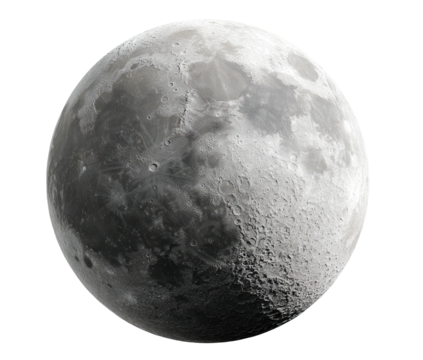Full Moon on Transparent Background: Detailed Grey Lunar Surface