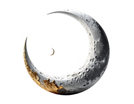 Detailed crescent moon phase with visible craters and texture isolated on transparent background