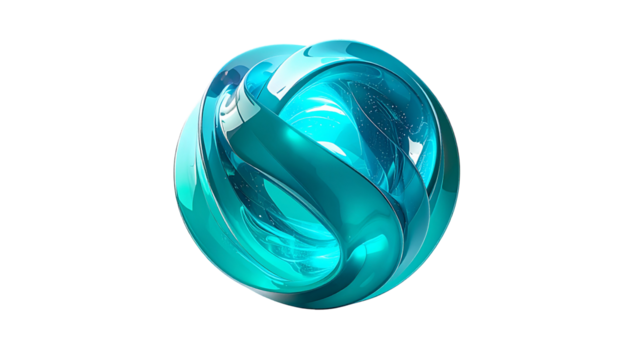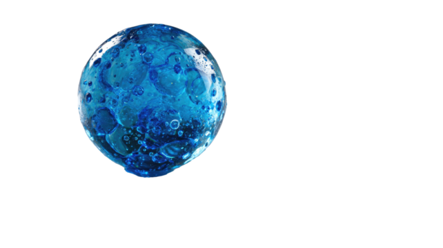 blue liquid glass sphere with trapped bubbles and glossy surface futuristic abstract object isolated on white background