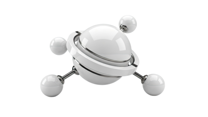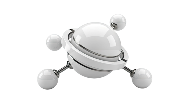 A minimalist abstract art piece featuring a gradient metallic ring engulfing a dark central sphere