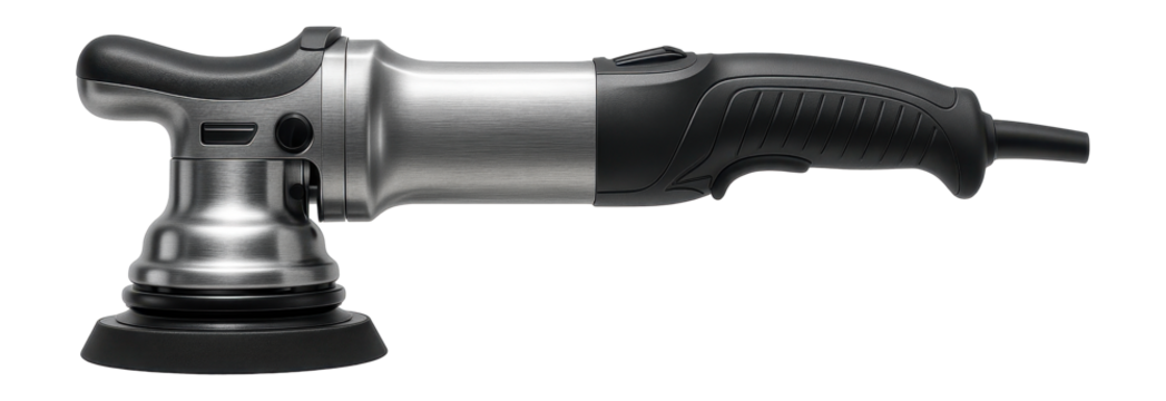 Long-throw orbital polisher with a 15mm orbit, used in high-end automotive shops.