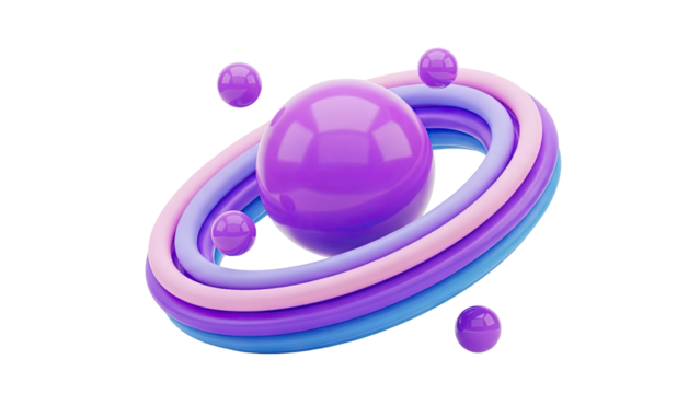Abstract planet graphic with orbiting rings conceptual design 3d illustration isolated on transparent background