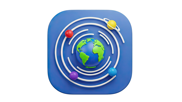 Stylized Earth with orbiting planets icon