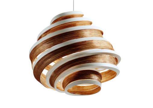 Hanging fixture stacked swirl of wood and white rings