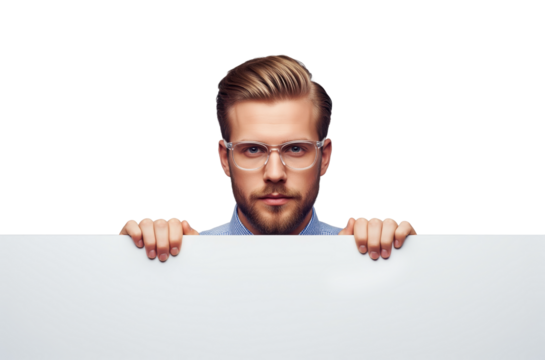 Male presenter preparing notification panel for visitor instructions, registration directions or event reminders and shop signage tasks relevant for reception desks or entrance information points