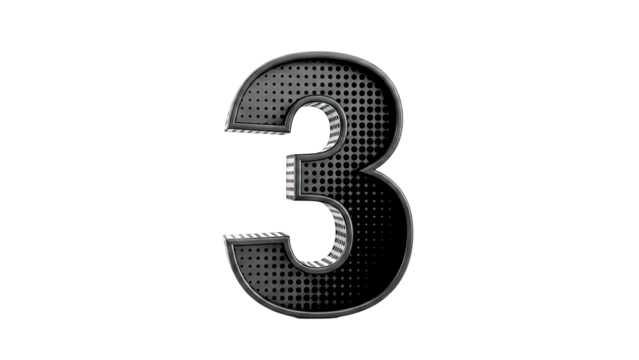 Black 3D Number 3 with Perforated Texture