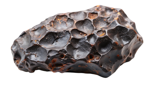 Iron Meteorite Fragment with Etched Widmanstätten Pattern – Dark Exterior, Isolated on Transparent Background, AI Generated