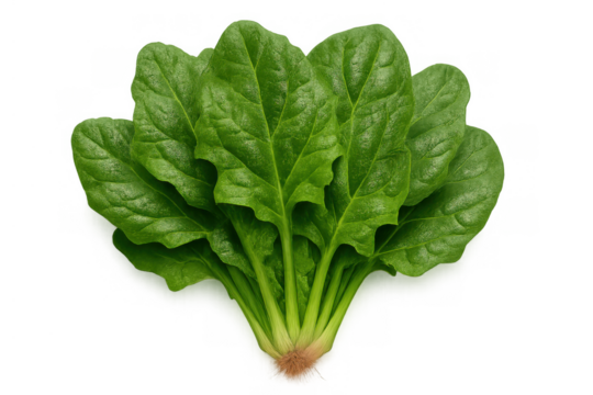 Fresh green spinach leaves forming a healthy, organic vegetable bunch for diet and nutrition with transparent background