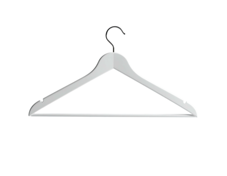 Isolated white wooden clothes hanger with a shiny metal hook against a black background