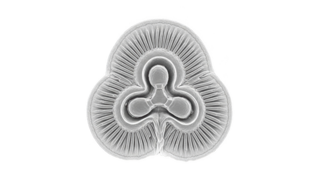 Segmented worm like organism with segmented body and small debris floating isolated on a transparent background