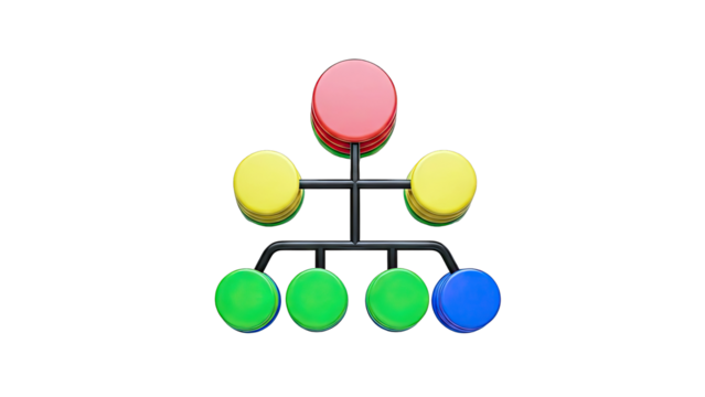 3D organization chart PNG isolated on transparent background, hierarchy structure for business management and team leadership