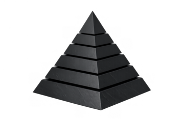 Black layered pyramid stepping structure demonstrating hierarchy, growth, and development on transparent background