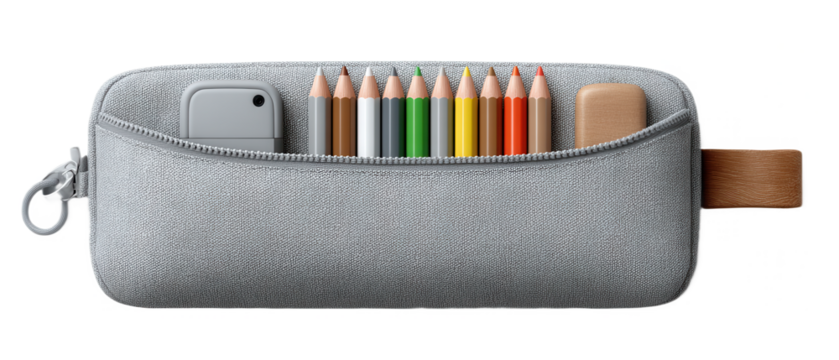 Clear plastic zipper pouch with red trim isolated on transparent background
