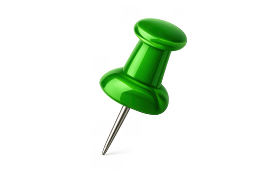 Green glossy push pin showing location, marking important notes, or organizing ideas on transparent background
