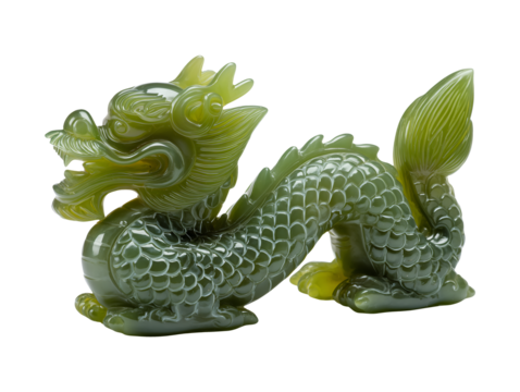 Green jade dragon sculpture isolated on transparent or white background, png