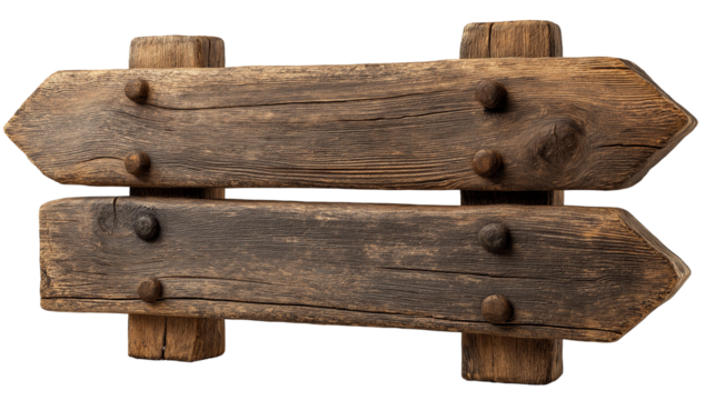 Wooden Direction Signpost With Two Blank Arrows: Rustic Navigation Board For Text, Guidance And Wayfinding Concept
