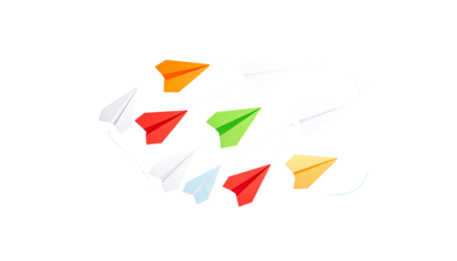 Crumpled paper turning into origami bird, symbolic image of learning through failure, white background