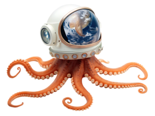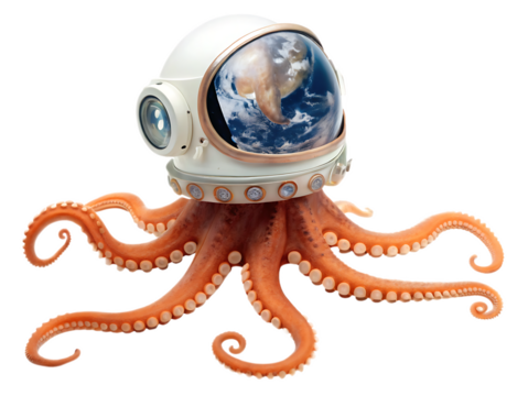 Astronaut helmet displaying cosmic scene on transparent background