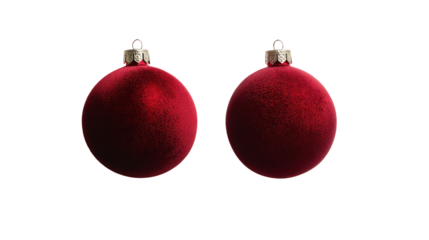 Two red velvet christmas ornaments isolated on transparent background