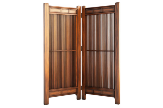 Wooden Bamboo Room Divider Screen with Natural Finish on transparent background