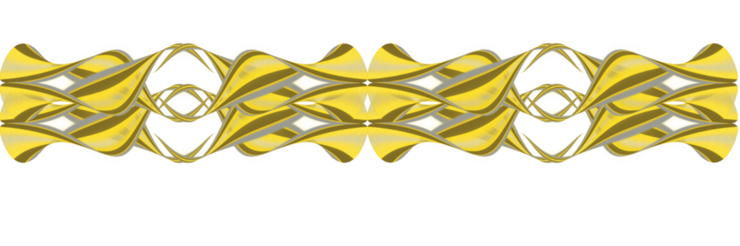 This image features a golden abstract symmetric wave pattern on a black background. The design appears fluid and dynamic, with mirrored curves and ribbon-like shapes forming a continuous ornamental