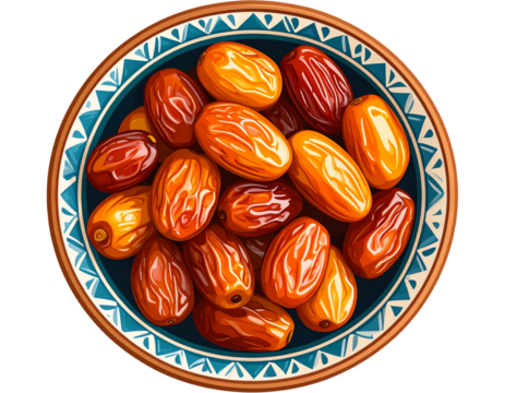 Flat Vector Illustration of Date Fruits in Ornamental Bowl, Transparent Background
