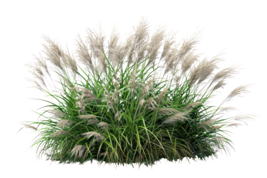 Rendered image of group of blooming ornamental grass isolated on transparent background