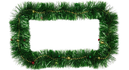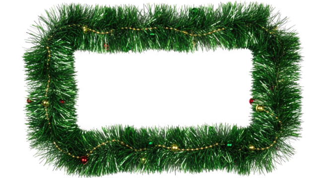 A green and gold Christmas garland with red and green ornaments on a png transparent