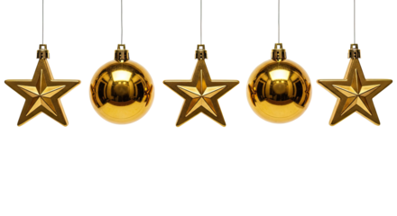 Gold Christmas ornaments hanging from strings gold ornaments hanging ornaments isolated on a transparent background