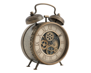 Antique Bronze Alarm Clock, Vintage Gears, Timepiece Mechanism