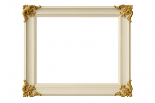 Elegant white-gold frame with intricate corner details, highlighting artwork against transparent background