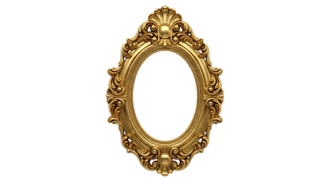 Elegant gold frame with baroque scroll design on transparent background