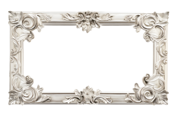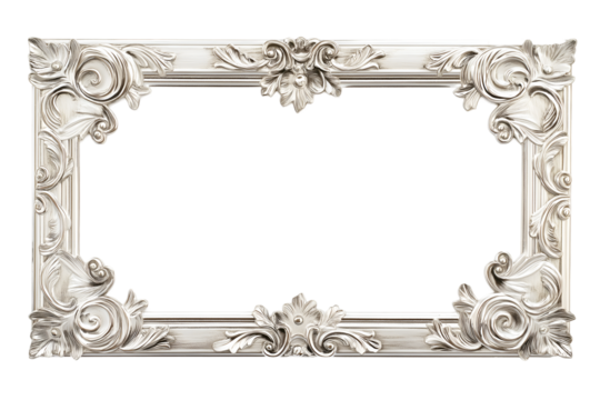 Victorian style frame with delicate floral patterns, metallic silver finish. Isolated on transparent background cut out