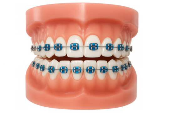 Realistic dental model demonstrating braces and orthodontic structure