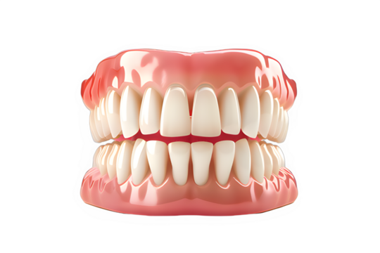Hyper-realistic 3d model of perfect human dentition with white teeth and pink gums isolated on a white background. Concept of cosmetic dentistry and orthodontics