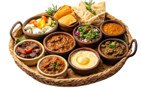 Ethiopian Orthodox Christmas feast setup with injera and traditional dishes symbolizing culture and celebration isolated on transparent background PNG